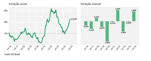 O número de dívidas em atraso no Brasil também registrou um crescimento expressivo em junho de 2025, com um aumento de 12,82% em relação ao mesmo período de 2024. Este dado é superior ao crescimento de 11,15% observado em maio, indicando uma piora substancial na capacidade de pagamento dos brasileiros. Na comparação mensal (maio para junho), o número de dívidas em atraso subiu 1,44%.